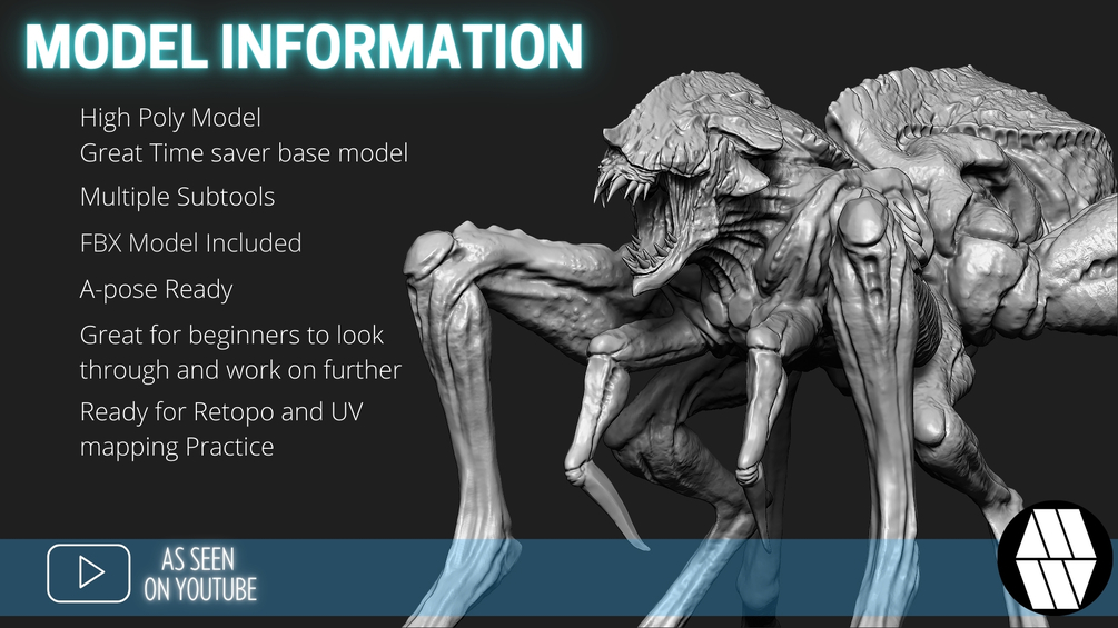 An excellent model to use for Practicing and referring back to. Take this base model further with detailing inside of ZBrush or use the FBX model in Blender or other 3D softwares.