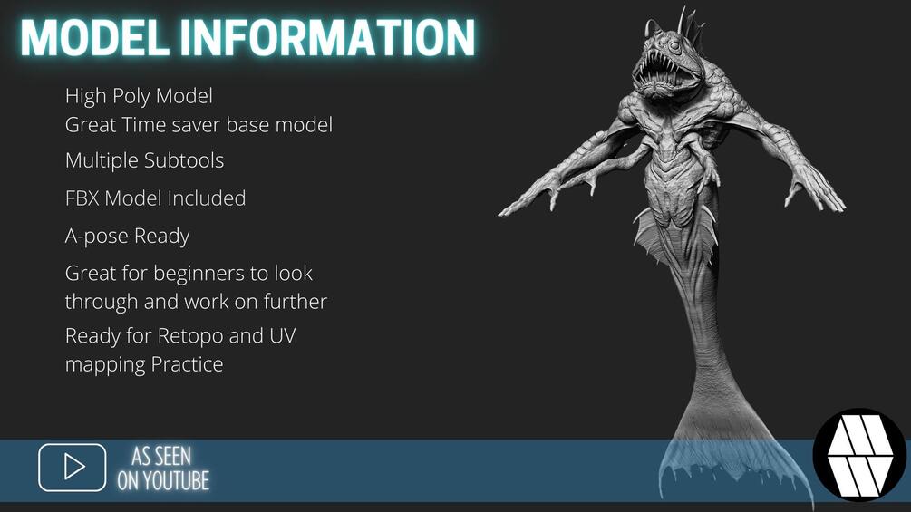 An excellent model to use for Practicing and referring back to. Take this base model further with detailing inside of ZBrush or use the FBX model in Blender or other 3D softwares.