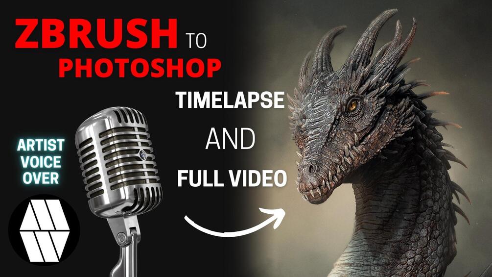 ZBrush to Photoshop 'Dragon Bust' Concept - Timelapse Voice Over and Full Video