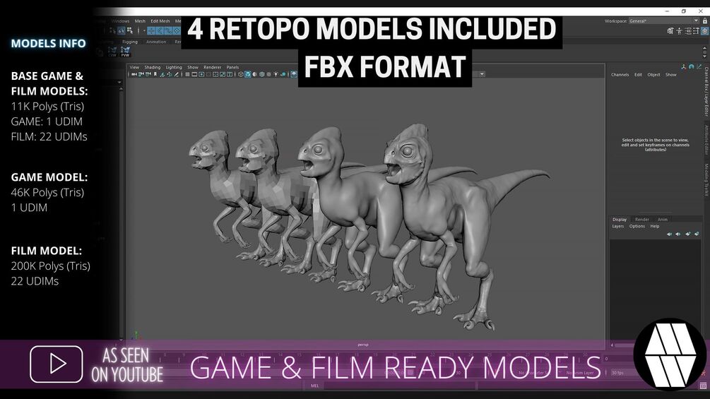Great time saver for students learning how to Texture/ Rig and Animate without the need to retopolo high poly models. Also a great source of reference for artist who are learning to retopo and UV map.