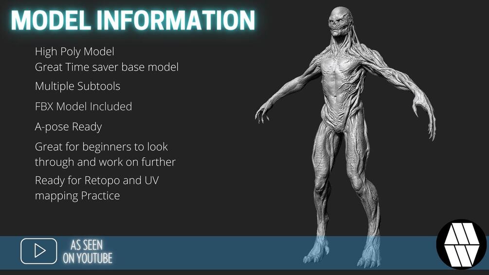 An excellent model to use for Practicing and referring back to. Take this base model further with detailing inside of ZBrush or use the FBX model in Blender or other 3D softwares.